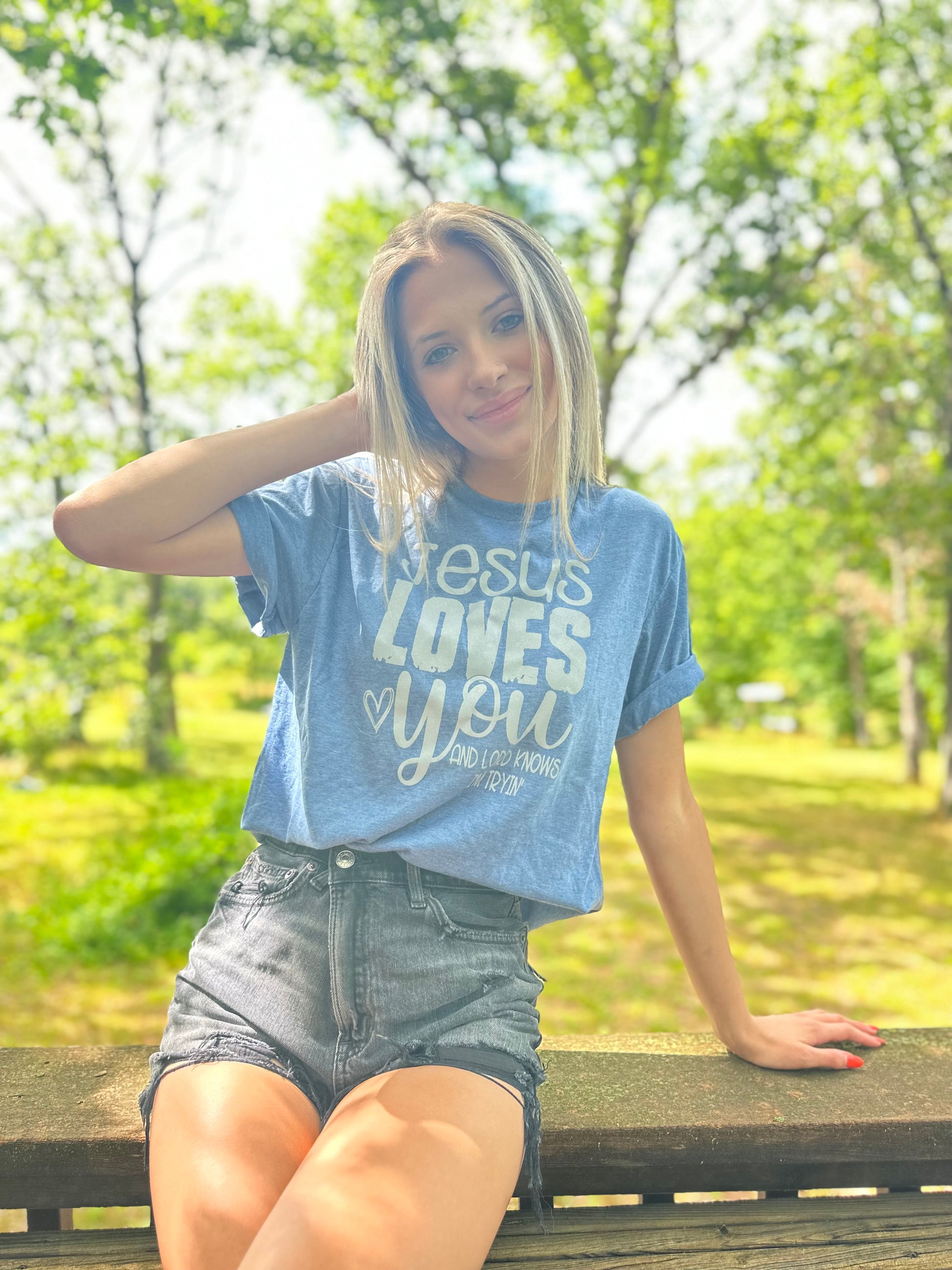 Jesus Loves You And Lord Knows I'm Tryin | Super Soft Graphic Tee | Religious Graphic Tee | Unisex Screen Printed T-shirt